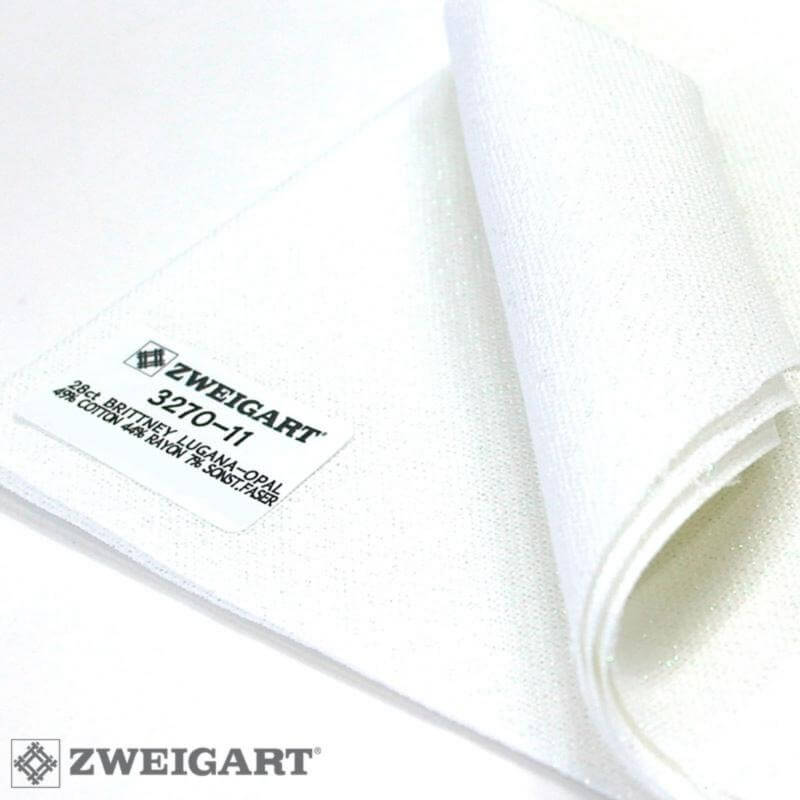 Ткань для вышивания Zweigart Brittney Lugana Aida 28, арт. 3270-11, цвет 11 (белый с перламутровым люрексом), ширина рулона 140см