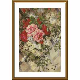 Набор для вышивания крестом на канве с фоновым рисунком Букет Шабо, 75х50см, СР6241, Новая Слобода