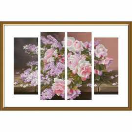 Набор для вышивания крестом на канве с фоновым рисунком Сирень и розы, 42х60см, СР6246, Новая Слобода