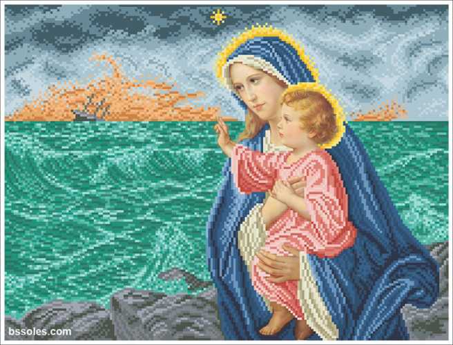Набор для вышивания бисером Мадонна с младенцем (в синем), МДС-50, 30.1х44.9см, БС Солес