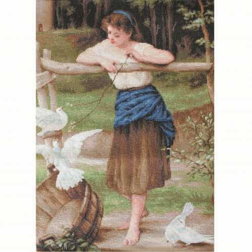 Набор для вышивания Девушка, дразнящая голубей, гобелен, 24x31см, G516, Luca-S