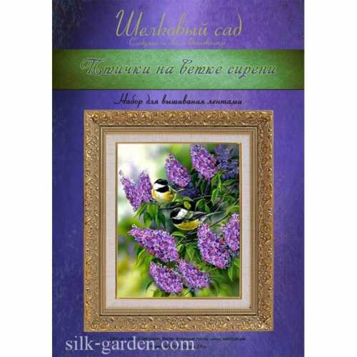 Набор для вышивания атласными лентами Птички на ветке сирени, Шелковый сад