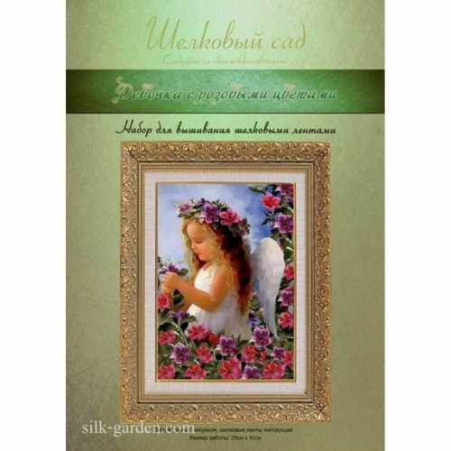 Набор для вышивания шелковыми лентами Девочка с розовыми цветами, Шелковый сад