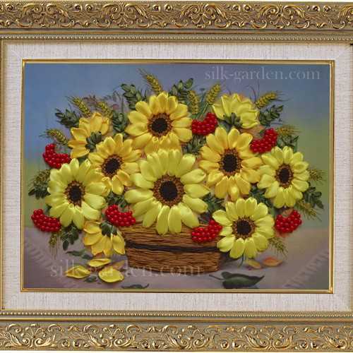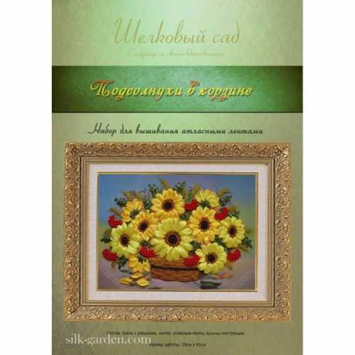 Набор для вышивания атласными лентами Подсолнухи в корзине, Шелковый сад