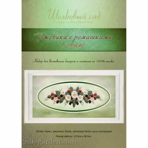 Набор для вышивания шелковыми лентами Ежевика с ромашками в овале, Шелковый сад