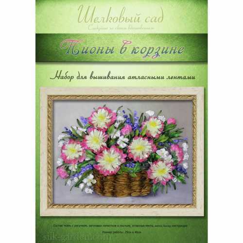 Набор для вышивания атласными лентами Пионы в корзине, ВЛ-Н-1102, Шелковый сад