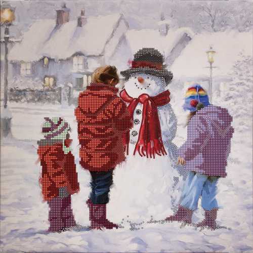 Х/б схема для вышивания бисером на подрамнике Снеговичок, 30х30см, FLS-102, Волшебная страна