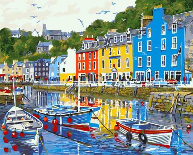 Набор для рисования по номерам Рыбацкий городок, арт. AS0252, 40х50см