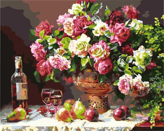 Набор для рисования по номерам Натюрморт с вином и розами, арт. BK-G278, 40х50см