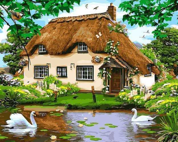 Набор для рисования по номерам Домик у пруда с лебедями, арт. BK-GX8291, 40х50см
