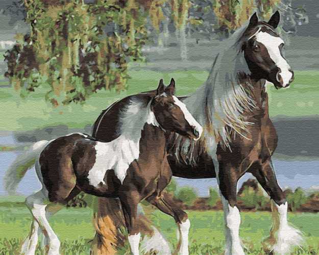 Набор для рисования по номерам Семья лошадей, арт. BK-GX33018, 40х50см
