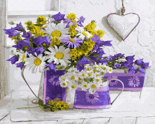 Набор для рисования по номерам Ромашки и фиалки, арт. BK-GX36032, 40х50см