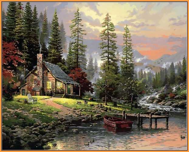 Набор для рисования по номерам Охотничьей домик (в раме), арт. NB1441R, 40х50см