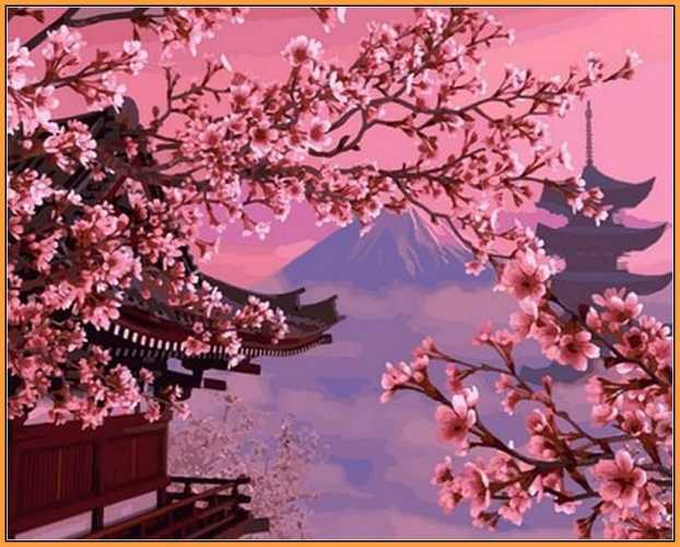 Набор для рисования по номерам Японский пейзаж (в раме), арт. NB595R, 40х50см