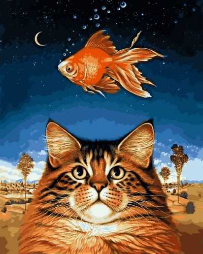Набор для рисования по номерам Кот и рыбка, арт. VP1142, 40х50см