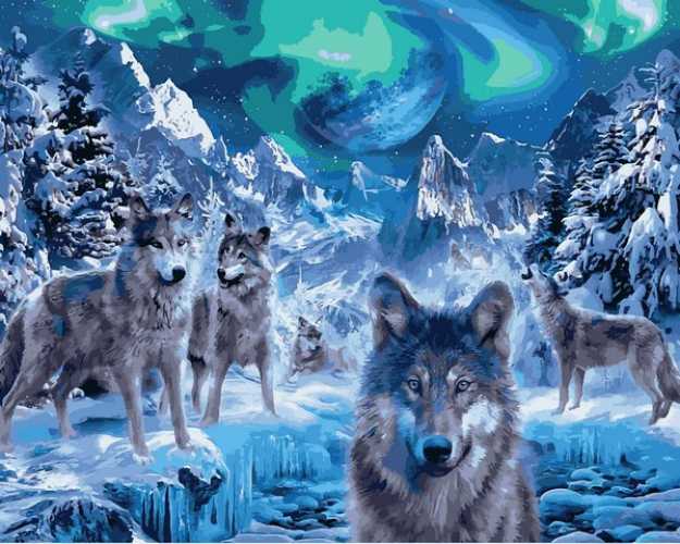 Набор для рисования по номерам Волки и северное сияние, арт. VP1102, 40х50см