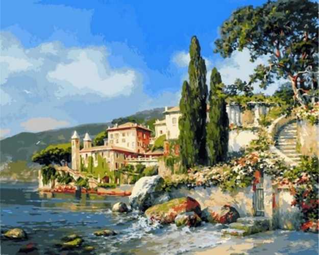 Набор для рисования по номерам Берег озера Комо, арт. VP850, 40х50см