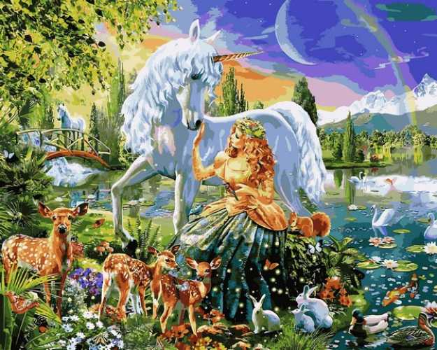 Набор для рисования по номерам Дева и единорог, арт. VP1092, 40х50см