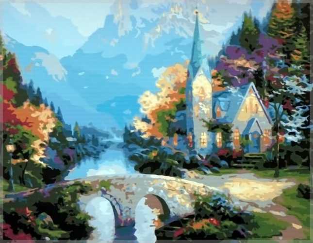 Набор для рисования по номерам Предгорная часовня, арт. MS338, 40х50см