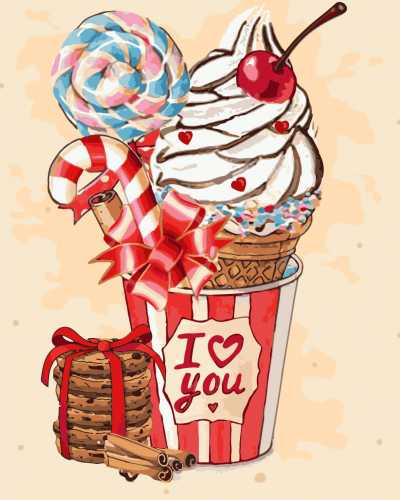 Набор для рисования по номерам Вишневое мороженко, арт. KHO5520, 40х50см