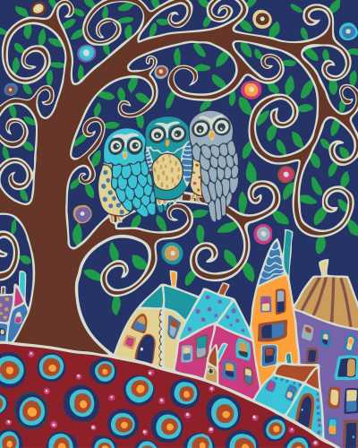 Набор для рисования по номерам Совиное трио, арт. KH2477, 40х50см