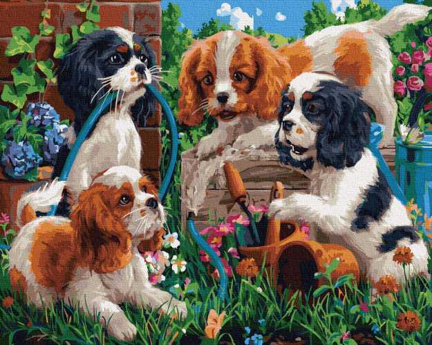 Набор для рисования по номерам Щенки в саду, арт. BK-GX35651, 40х50см