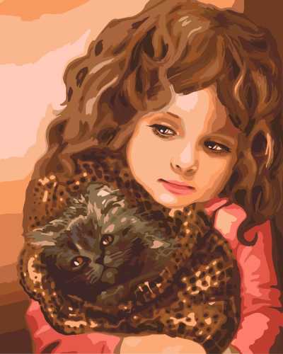 Набор для рисования по номерам Малышка с котенком, арт. KH2307, 40х50см