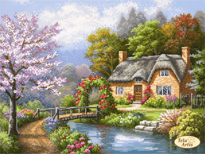 Схема для вышивки бисером с полной зашивкой Домик мечты. Мостик через реку, ТА-487, 24х32см, Tela Artis