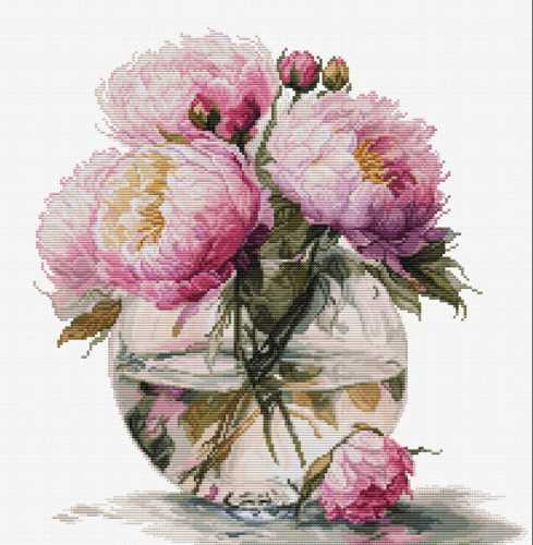 Набор для вышивания крестом Позы пионов, L8083, 35x35см, Luca-S