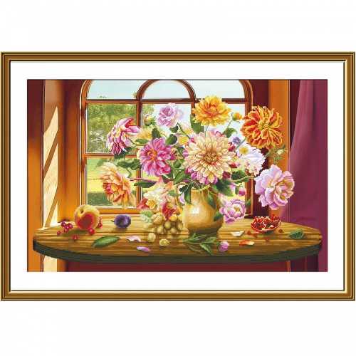 Набор для вышивания крестом на канве с фоновым рисунком Вальс осени, 46х29см, СР2254, Новая Слобода