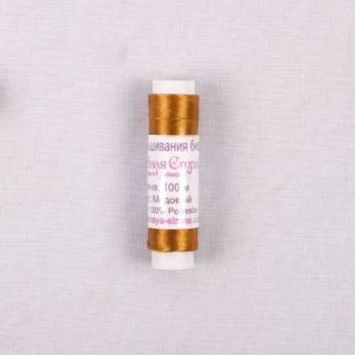 Прочная нить медового цвета для вышивки бисером, длина 100м.
