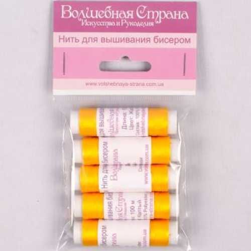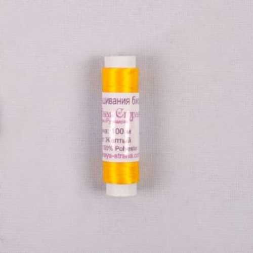 Прочная нить жёлтого цвета для вышивки бисером, длина 100м.