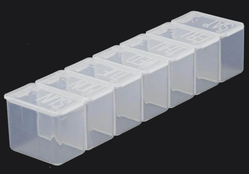 Органайзер для хранения бисера и различных мелочей на 7 ячеек. Каждая ячейка соответствует дню недели. Размер ячеек - 2.5х1.5х2.2см.