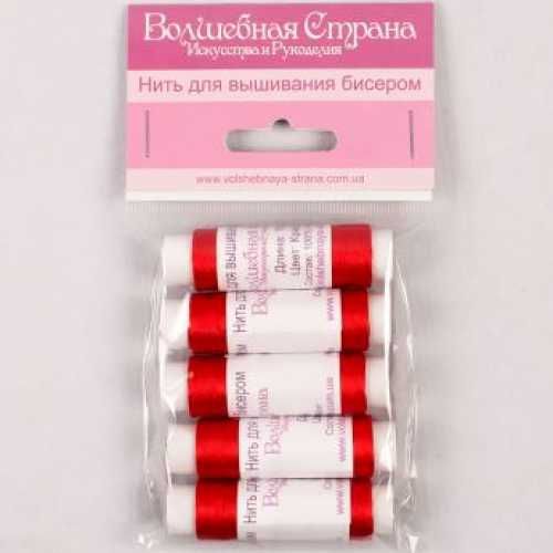 Прочная нить вишневого цвета для вышивки бисером, длина 100м.