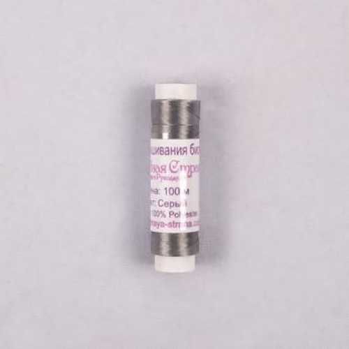 Прочная нить серого цвета для вышивки бисером, длина 100м.