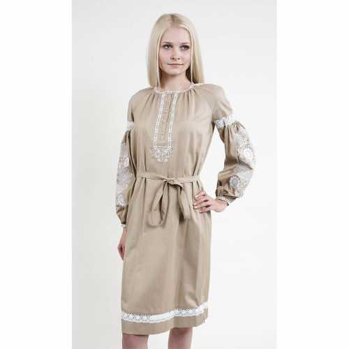 Платье с машинной вышивкой (арт. P-2301600). Состав ткани: 63% хлопок, 30% модал, 7% лен. Доступные размеры: 42-55. Производство - Луцк, Украина.