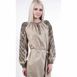 Платье с машинной вышивкой (арт. P-2781600). Состав ткани: 63% хлопок, 30% модал, 7% лён. Доступные размеры: 38-56. Производство - Луцк, Украина.