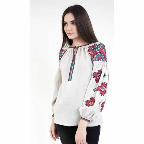 Женская сорочка с машинной вышивкой (арт. V-2671608). Состав ткани: 60% лён, 25% полиэстр, 15% хлопок. Доступные размеры: 38-56. Производство - Луцк, Украина.