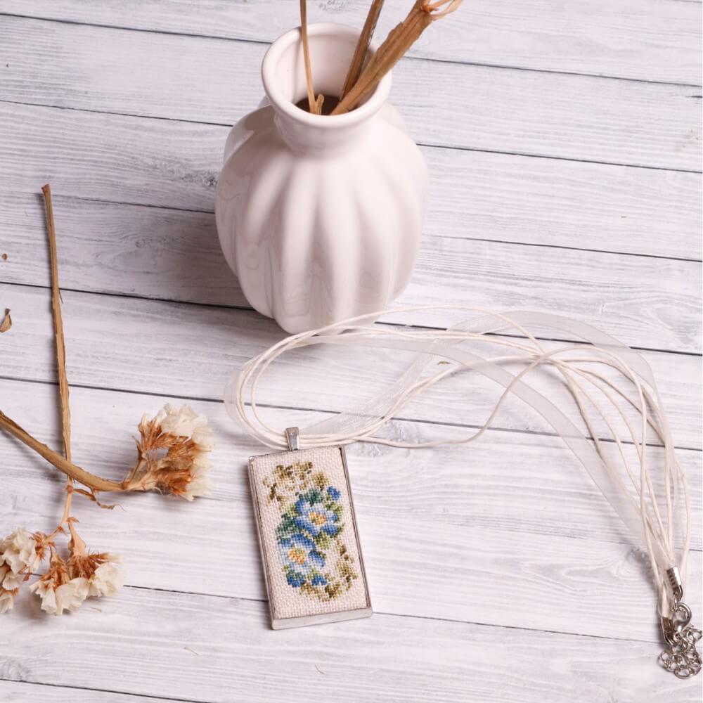 Zweigart Belfast 32, мулине Anchor, металлическая заготовка кулона, подвес