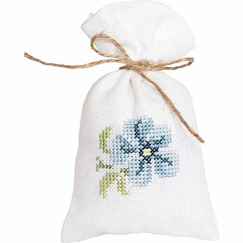 Набор для вышивки мешочка счетным крестом Голубая фиалка (арт.PM1216 ) ТМ Luca-S содержит немецкую канву Zweigart Fain-Floba, ткань для тыльной стороны мешочка, мулине Anchor, символьную схему и инструкцию на русском языке.