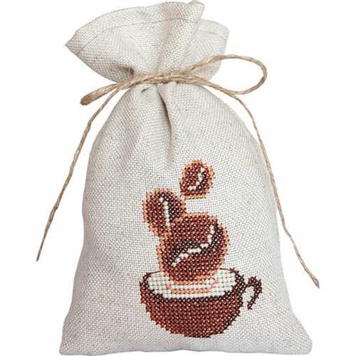 Набор для вышивки мешочка счетным крестом Кофе (арт.PM1218 ) ТМ Luca-S содержит немецкую канву Zweigart Fain-Floba, ткань для тыльной стороны мешочка, мулине Anchor, символьную схему и инструкцию на русском языке.