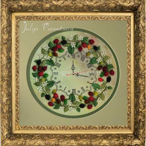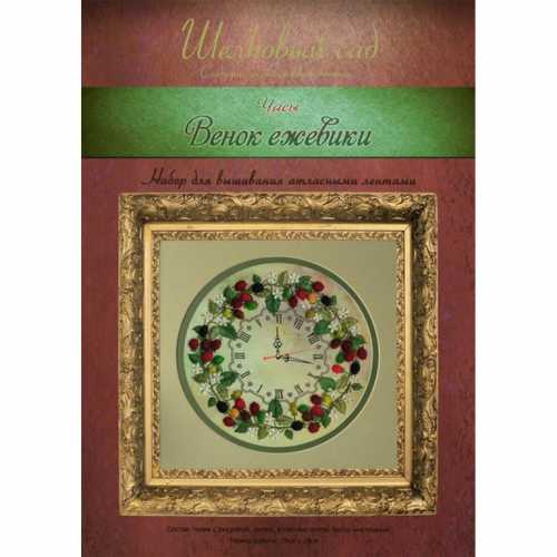 Набор для вышивки атласными лентами Часы - Венок ежевики (ВЛ-Н-1065) ТМ Шелковый Сад содержит шелковые ленты, бисер, ткань с нанесенным рисунком-схемой, подробную инструкцию и фото работы. Часовой механизм Вы сможете купить отдельно, выбрав в разделе Аксессуары. Так как производитель не комплектует наборы иглами, мы их Вам подарим :)