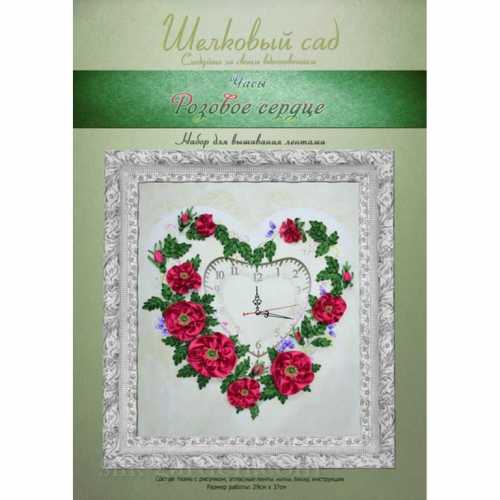 Набор для вышивания атласными лентами Часы - Розовое сердце, Шелковый сад, ВЛ-Н-1098, 29х29см