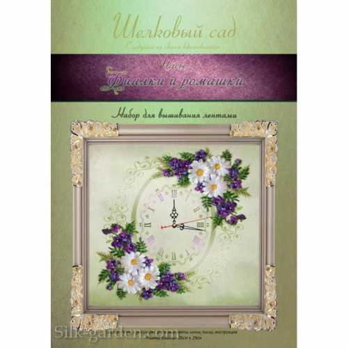 Набор для вышивки атласными лентами Часы - Фиалки и ромашки (ВЛ-Н-1078) ТМ Шелковый Сад содержит шелковые ленты, бисер, ткань с нанесенным рисунком-схемой, подробную инструкцию и фото работы. Часовой механизм Вы сможете купить отдельно, выбрав в разделе Аксессуары. Так как производитель не комплектует наборы иглами, мы их Вам подарим :)