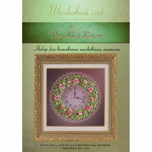 Набор для вышивания шелковыми лентами Часы - Розовый венок (фиолетовый фон), Шелковый сад, ВЛ-Н-1072, 29х29см