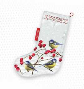 Набор для вышивки счетным крестом Blue tits Stocking, Чулок синички (LETI-949) компании Luca-S содержит изображение готовой работы, схему, мулине Anchor, канву Zweigart Aida 14ct., иглу и инструкцию на русском языке.