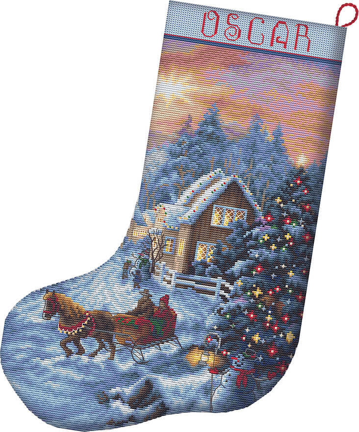 Набор для вышивки счетным крестом Christmas Eve Stocking, Канун Рождества Чулок (L8011) компании Luca-S содержит изображение готовой работы, схему, мулине Anchor, канву Zweigart 14 ct. (100/101), иглу и инструкцию на русском языке.