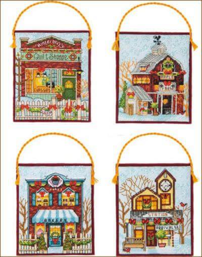 Набор для вышивания крестом Winter Village Ornaments, Рождественские украшения - Зимнее село, Dimensions, арт. 70-08954, 9x11см