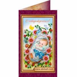 Набор для вышивки открытки бисером С новорожденным, 84х140мм, AO-013, Абрис Арт