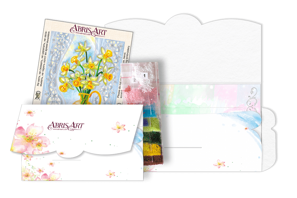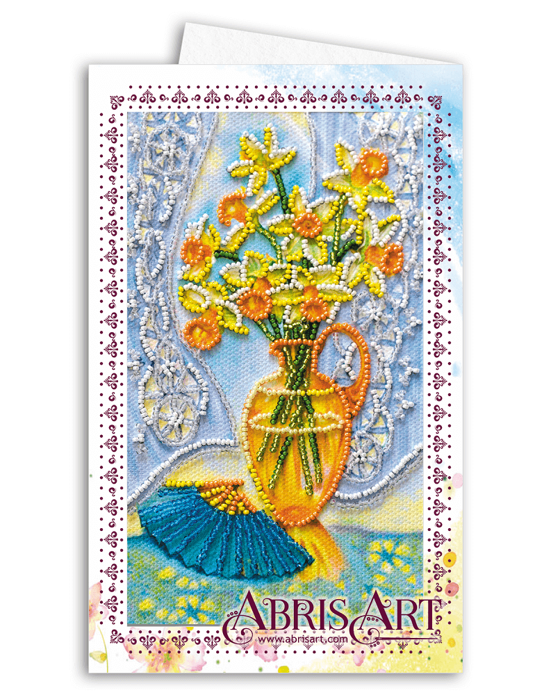 Набор для вышивания открытки-конверта микробисером Натюрморт с веером, 8.4х14см, AOM-001, Абрис Арт